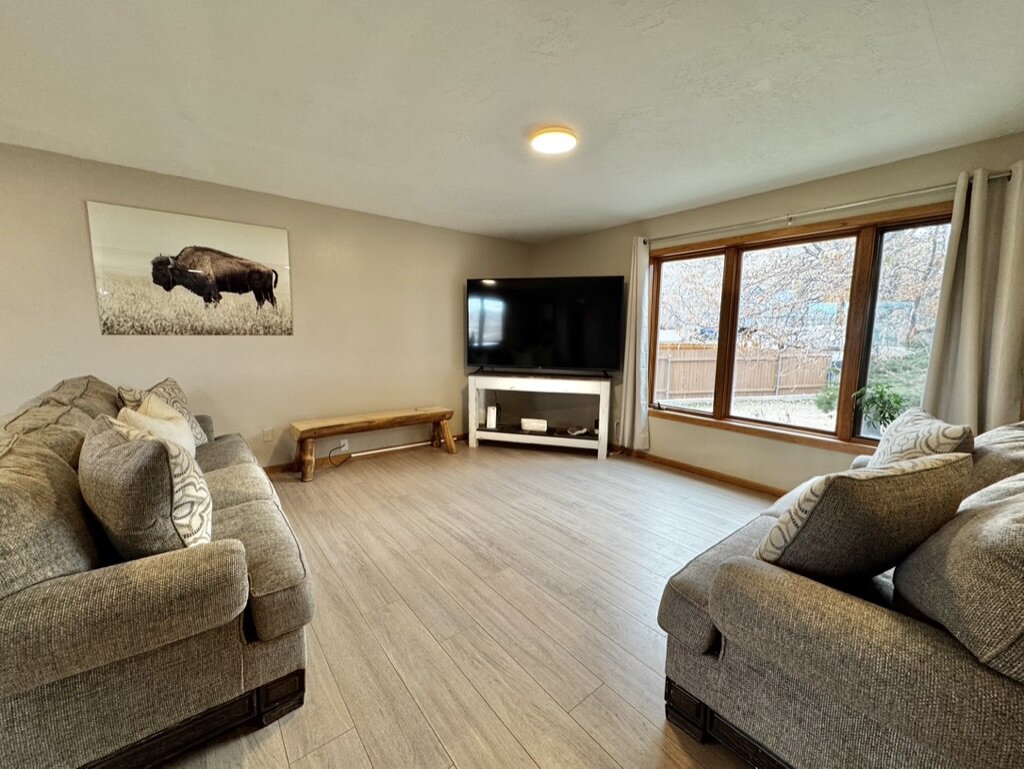 1145 Maine Way Green River WY. If you’ve been dreaming of space, privacy, and peaceful in-town living, this home is one you won’t want to miss. Tucked away at the end of a quiet cul-de-sac on a generous .39-acre lot, this three-level home offers 3,464 sq. ft. of thoughtfully designed living space. Inside, you’ll find four bedrooms plus a non-conforming room and 3.5 bathrooms, with a layout that feels comfortable, functional, and easy to live in. Two upstairs bedrooms open to a walkout balcony, creating the perfect spot to step outside, breathe in the fresh Wyoming air, and take in the views. The kitchen features newer granite countertops and backsplash, offering a timeless look and plenty of room for everyday living. For added convenience, the laundry room sits upstairs near the bedrooms, making daily routines simple and seamless. Outside, the setting is just as special. The expansive backyard feels like a private retreat, complete with a peaceful pond and charming pumped stream, plus a spacious back deck made for morning coffee, quiet evenings, and soaking in Wyoming sunsets. With beautiful in-town and mountain views from your own yard, this home offers the kind of sunrise-to-sunset moments that never get old. A two-car garage with generous storage space rounds out the property, giving you plenty of room for vehicles, gear, and everyday essentials. This is more than just a house — it’s a place to slow down, spread out, and truly enjoy where you live. Seller is related to listing agent.
