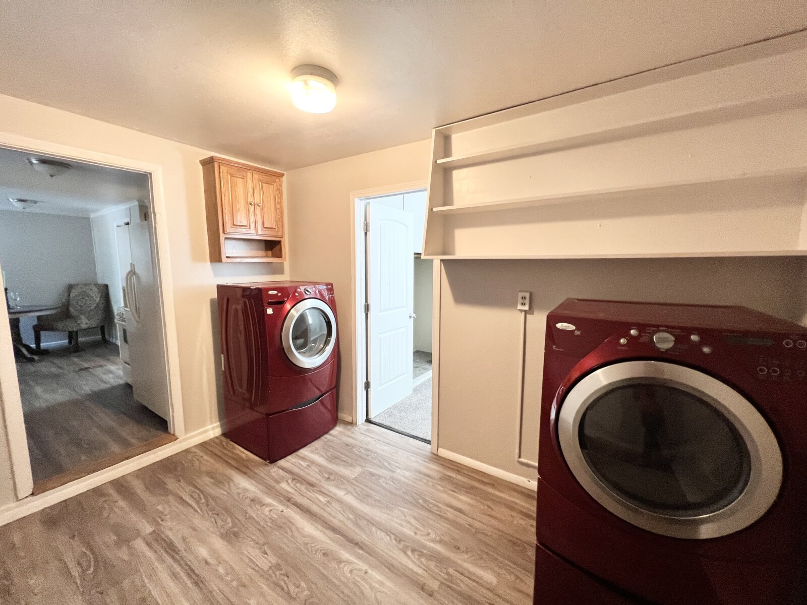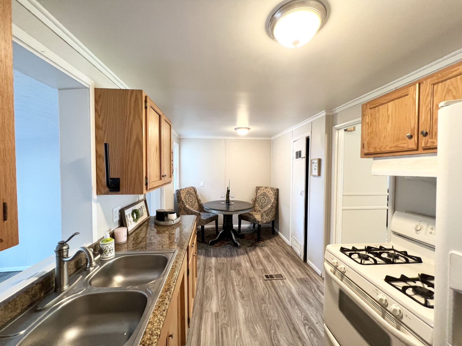 Super cute spacious one level home on the Eastside. 3 bedrooms, 1 bath with lots of updated throughout. Hardwood floors through the living room, hallway and two bedrooms. New luxury vinyl planking in dining room, kitchen, laundry room and family room. Carpet in master bedrooms. Kitchen has oak cabinetry and granite countertops. One year home warranty included. Extras include manual sprinkler in front, Central air and shed