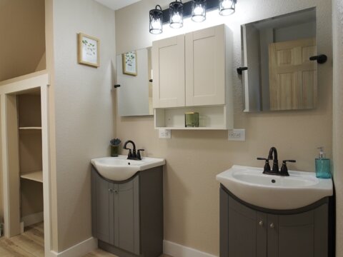 – [Ava] Right as you come upstairs, you’re greeted with two bedrooms and another bathroom.