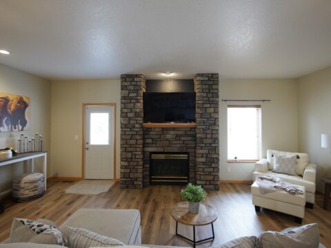 Welcome to Wolf Creek! This spacious and well-maintained home is designed for comfort and functionality. Enjoy peace of mind with a new roof installed in 2021 and relax on the inviting front patio, perfect for morning coffee or evening sunsets. Inside, the home features an eat-in kitchen with tons of cabinet space, ideal for both everyday living and entertaining, along with a formal dining room for hosting gatherings. The living room is anchored by a beautiful stone fireplace, creating a cozy and welcoming atmosphere. The main level offers a large primary suite, plus three additional bedrooms and a full bathroom, providing plenty of space for family or guests. Downstairs, you’ll find a fifth bedroom, third bathroom, and a generous family room, perfect for movie nights, a game room, or additional living space. Off the upstairs living room, step out onto the deck overlooking the beautiful backyard, an ideal spot for grilling, relaxing, or enjoying Wyoming’s wide-open skies. With its thoughtful layout and ample room to grow, this home is ready to meet a variety of lifestyle needs—don’t miss the opportunity to make it yours.