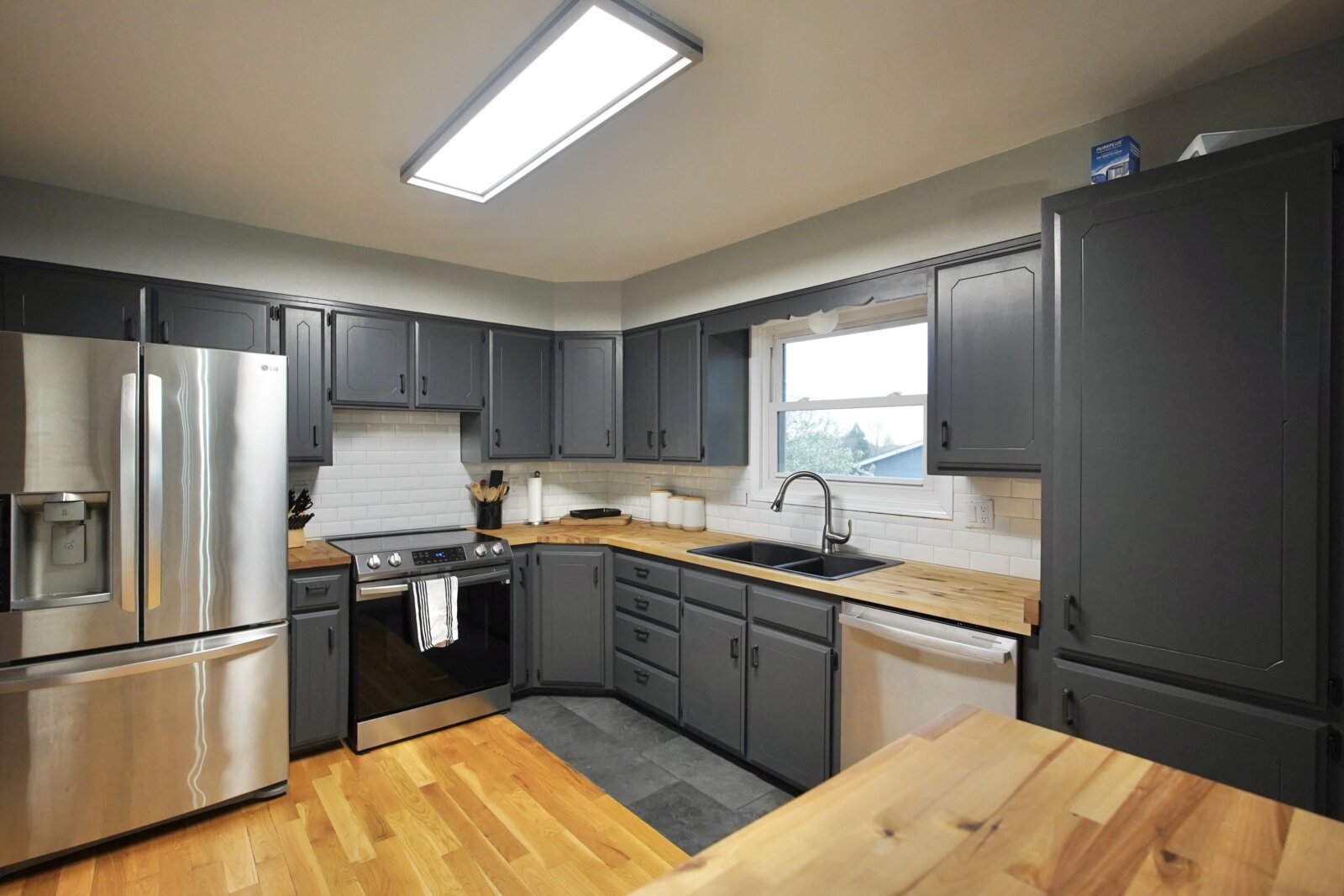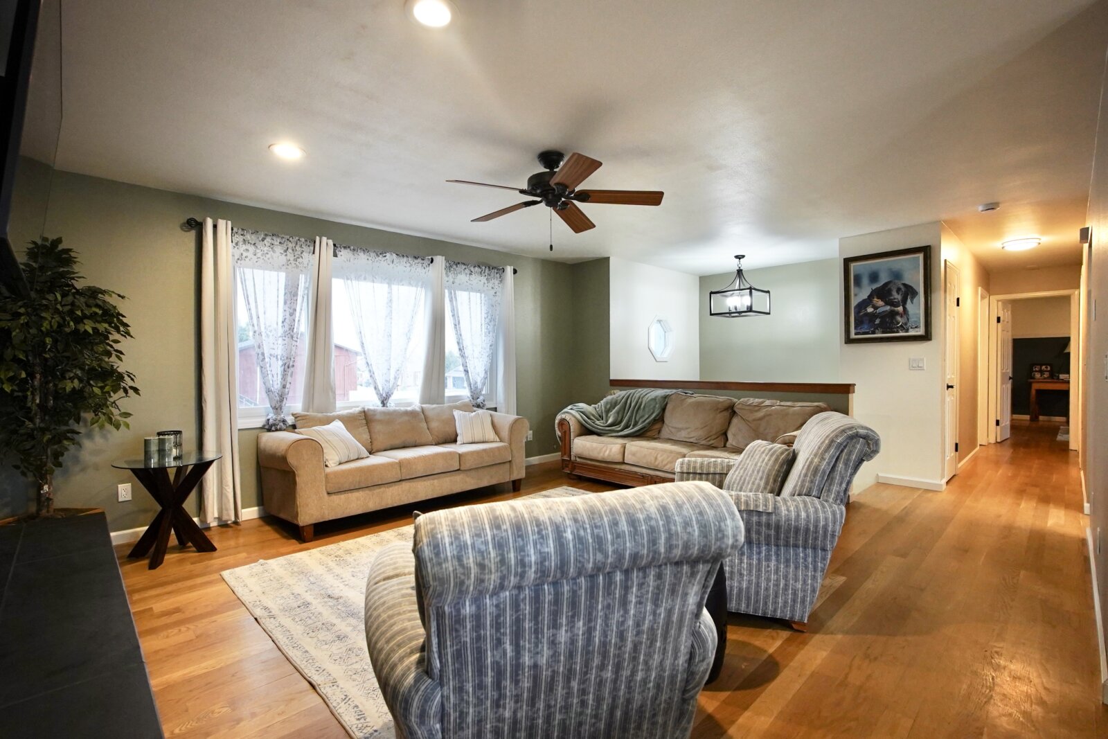 The upper level showcases hardwood floors, while vinyl windows throughout provide efficiency and natural light. The home has been freshly painted both inside and out, giving it a clean, modern feel.