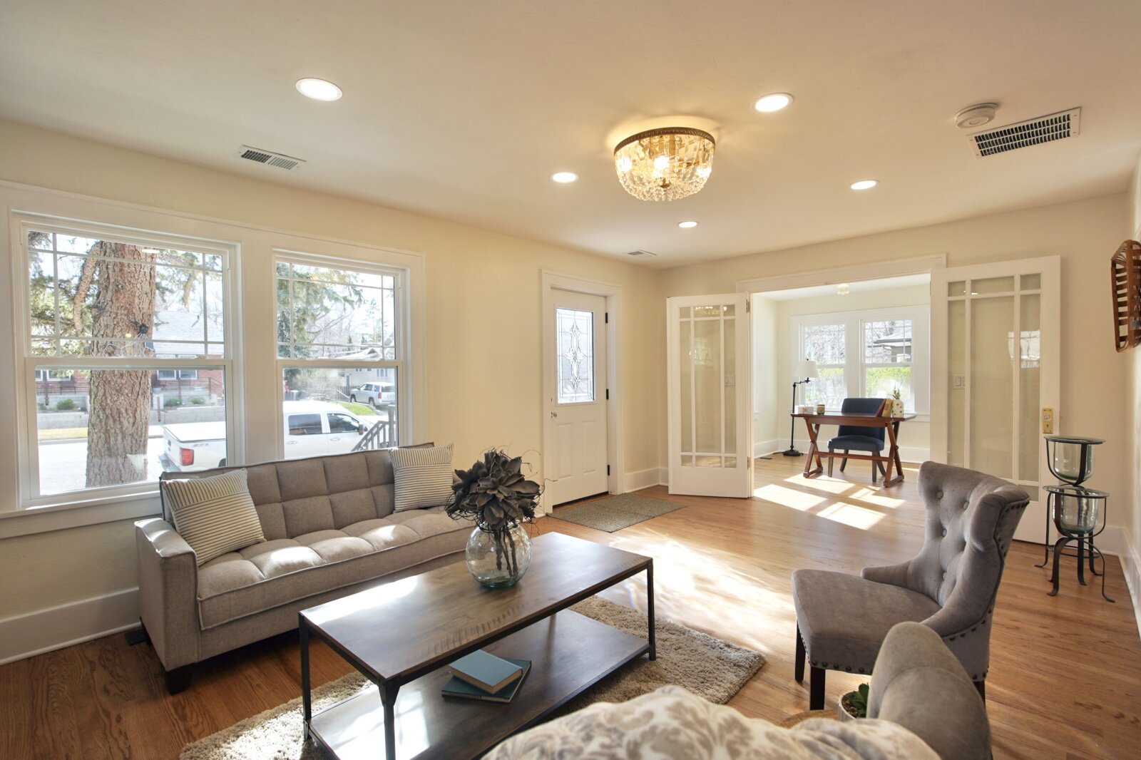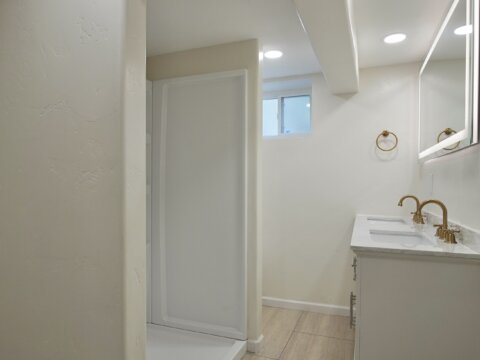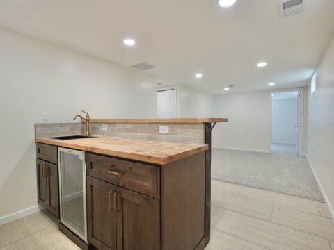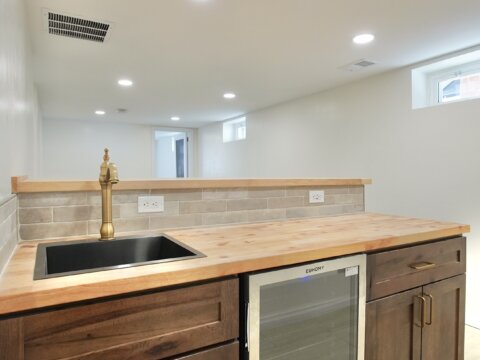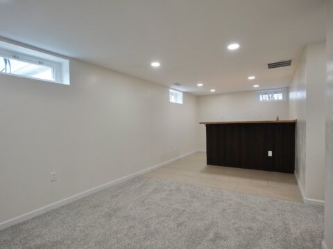 Downstairs, you’ll find a completely redesigned basement with a large living area, wet bar, additional bedroom with egress window and walk-in closet, full bathroom with dual vanity, and a dedicated laundry/utility space. With three separate living areas and an office with original French doors, there’s room for everyone.