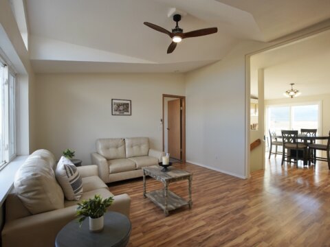 The 5-bedroom, 3-bath home features a walk-out basement and a thoughtfully designed layout. The main level includes both living and dining rooms, plus a large eat-in kitchen with abundant cabinetry and workspace. The laundry is conveniently located on the main floor.