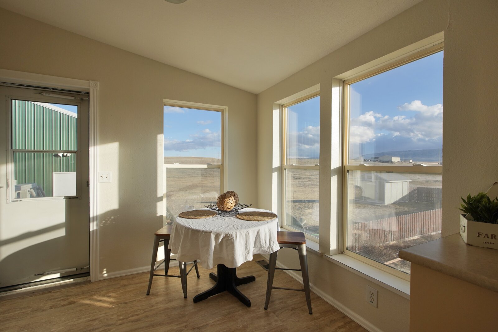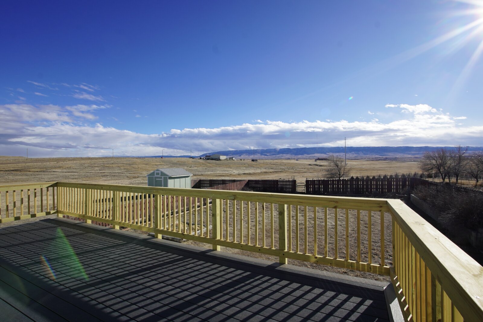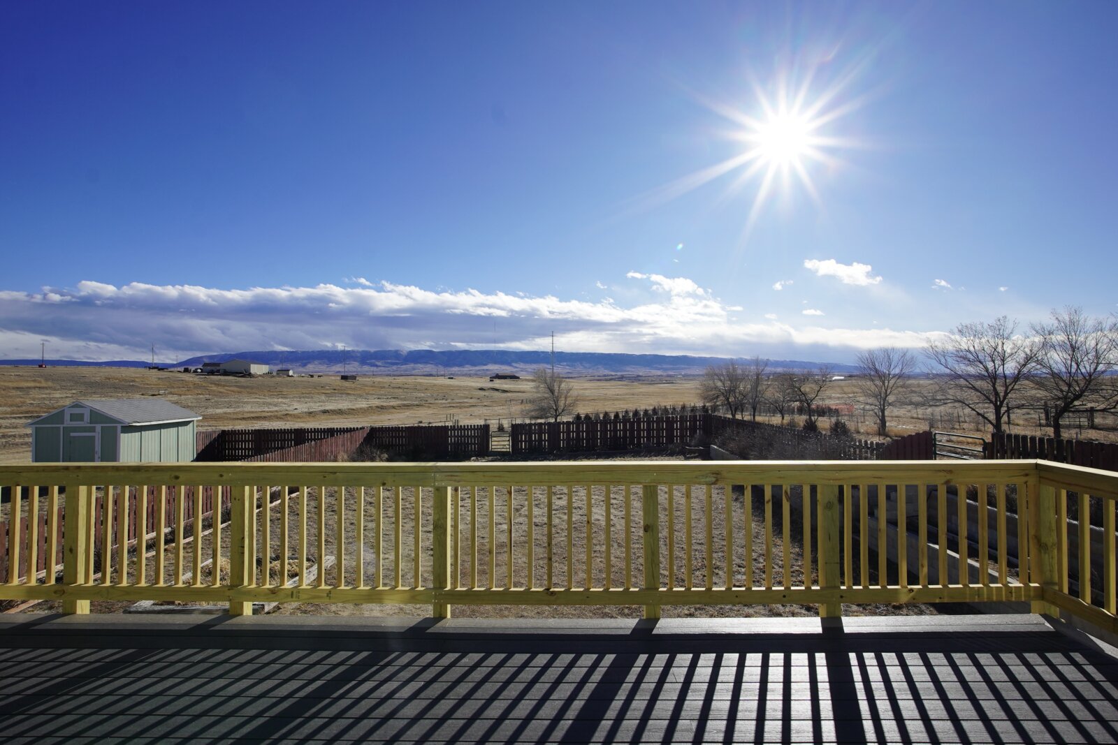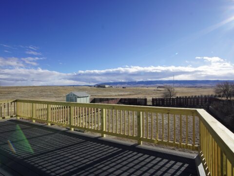 This property combines acreage, equestrian amenities, shop space, and comfortable living — all surrounded by wide-open Wyoming views.